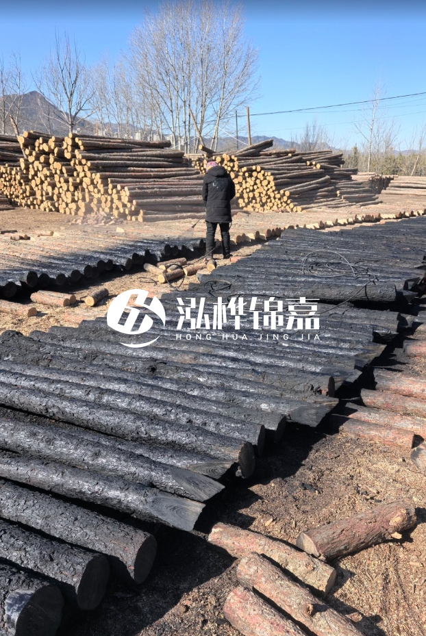 - 碳化處理:表面烤焦形成碳化層(成本+5~10元/根),防蟲(chóng)防腐效果顯著(zhù),但降低木材強度。